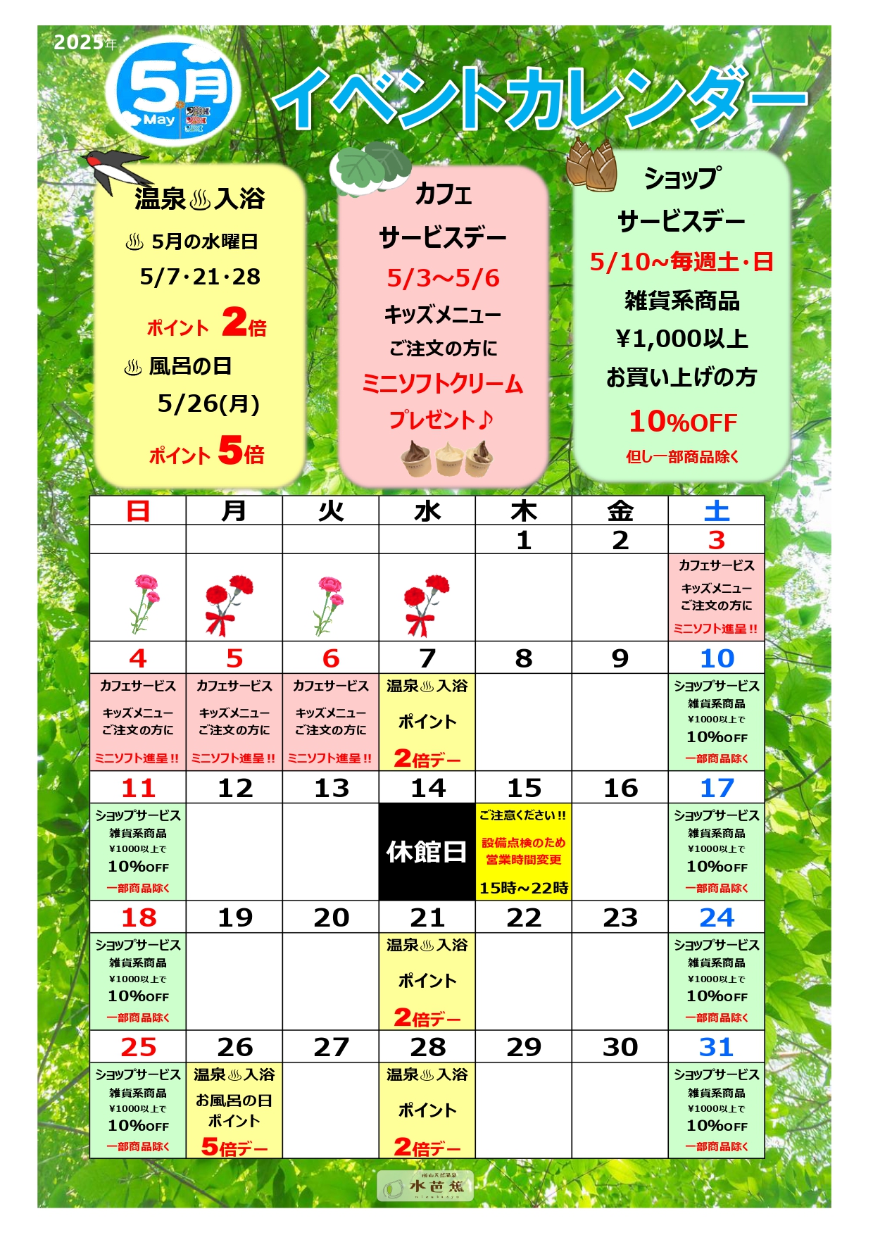 お出かけの後は水芭蕉の温泉でゆっくりおくつろぎくださいませ♨
